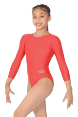 Any red-coloured nylon or crepe gymnastics leotard is acceptable. These are more suitable for younger children.